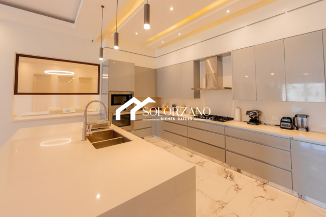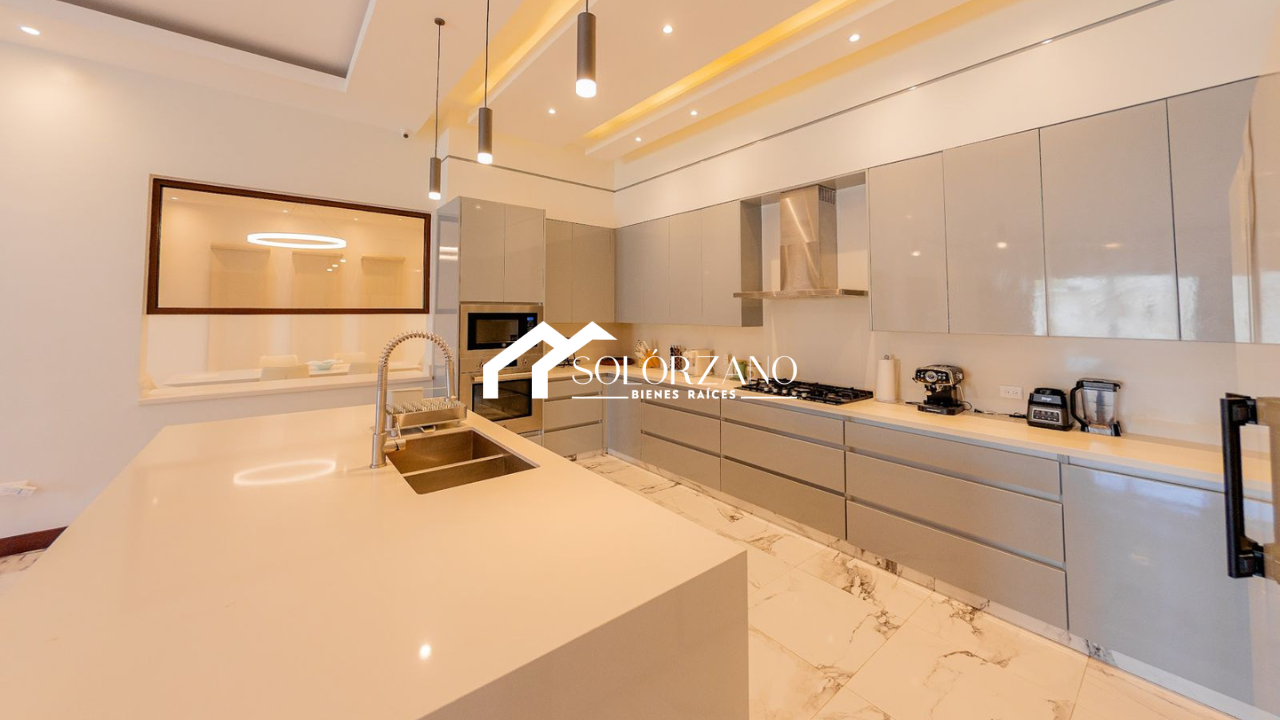 Cocina moderna estilo abierto, con mobiliario de alta calidad y excelente funcionalidad